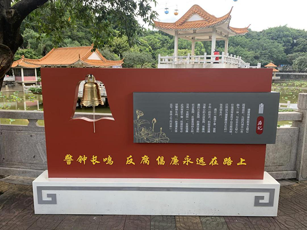 为进一步弘扬廉政文化,激发见贤思齐、奋发向上的正能量,促进党员干部廉洁从政、干净干事,营造廉荣贪耻、崇廉尚洁的社会风气,塘厦镇纪委于2016年依托镇内综合性文化公园建设廉政文化宣传阵地,2021年以来将其进一步优化扩建为镇廉政教育主题公园。该园以“廉政塘厦 你我同行”为主题,将生动丰富的廉政宣传素材与文化公园内的亭台楼阁、林荫小道等自然、人文景观有机融合,打造形成“廉心廊”“廉心桥”“廉心阁”三个特色板块,集宣传教育警示于一体,让廉洁文化融入干部群众日常生活,广受当地干部群众好评。